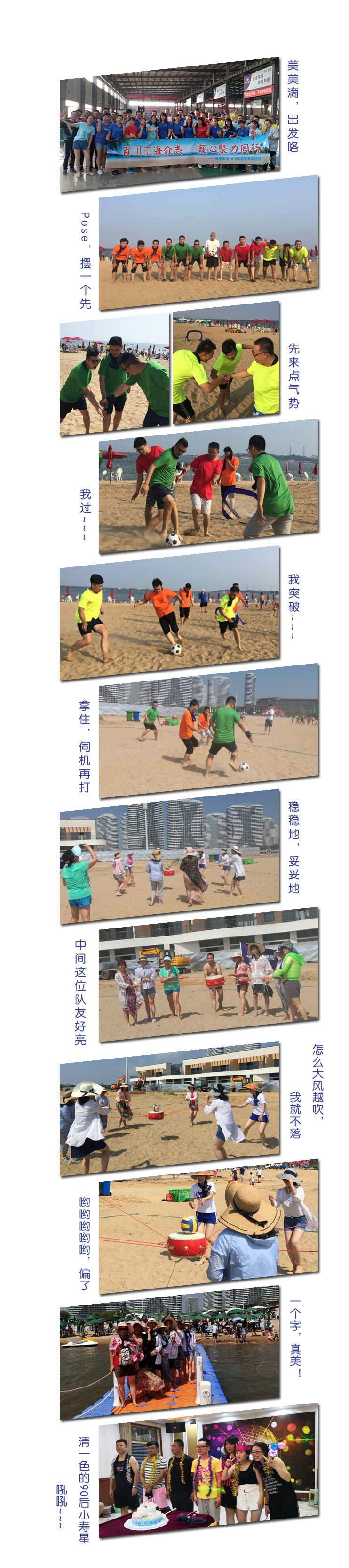 欣賞美麗的風景,放松身心,享受團隊的協作,緩解工作和生活的壓力。在格瑞集團不僅僅是工作,還有生活。歡快的三天很快過去了,東戴河留下了格瑞人追逐的腳步、同行的歡快和爽朗的笑聲。不同部門間的同事通過此次團建,加深了認識和增強了凝聚力。活潑:適時的放松,嚴肅:緊張團結的工作,格瑞人短暫休憩之后,又將更大的熱情投入到未來的工作。